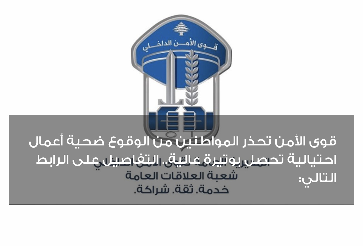 لذلك، تطلب المديرية العامة لقوى الامن الداخلي من المواطنين الكرام الحذر: