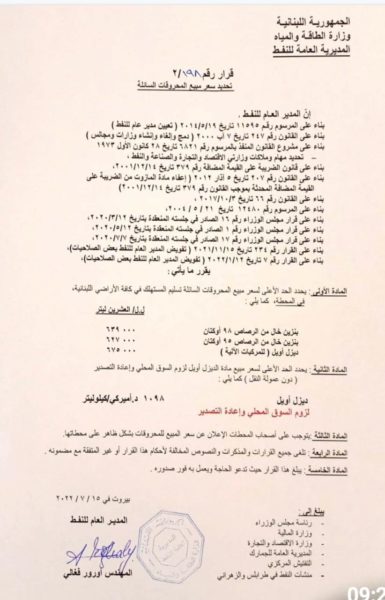 المازوت: 675000 ليرة لبنانية (-4,000).