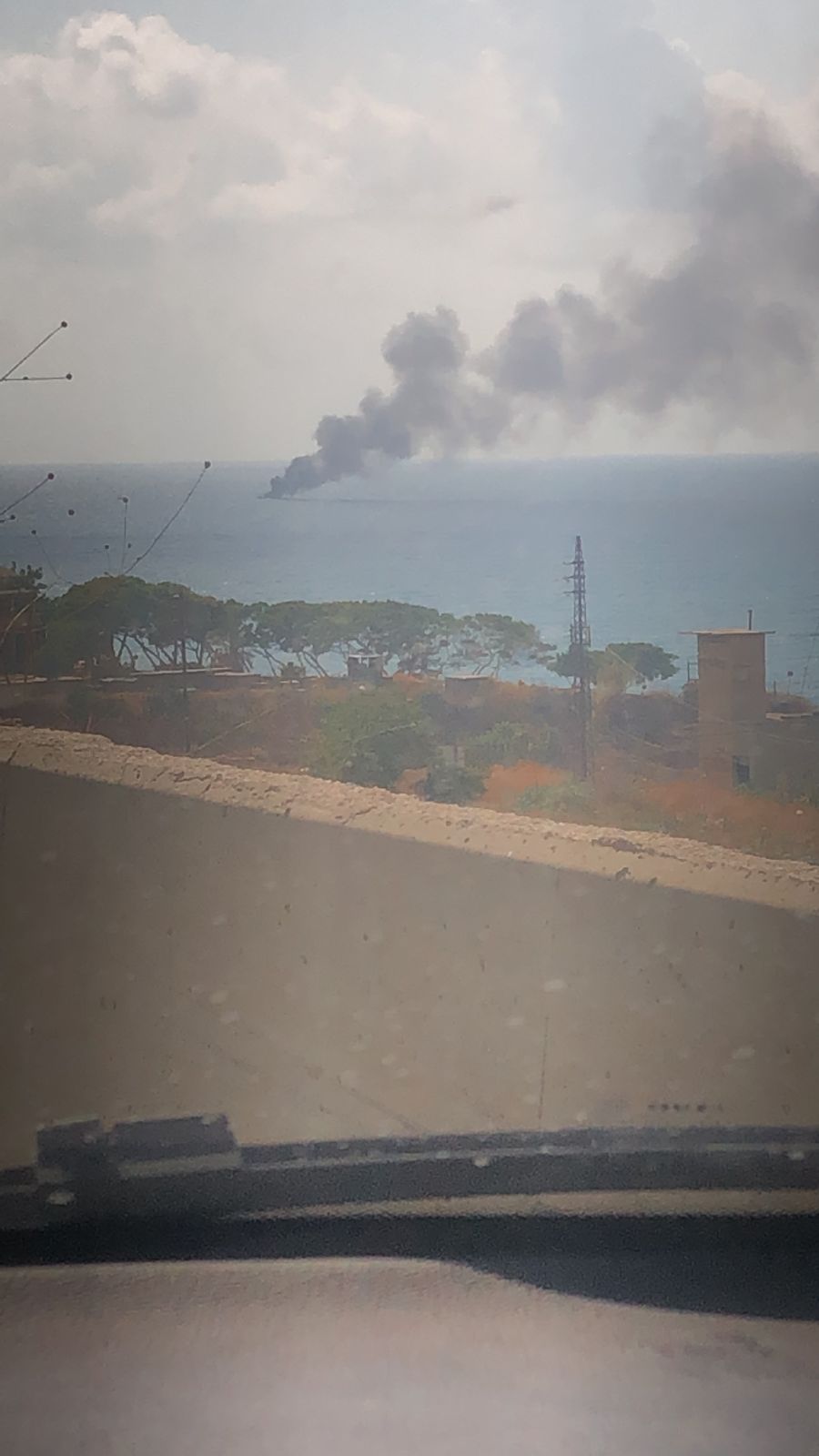 إحتراق مركب تابع للجيش اللبنلني في عرض البحر قبالة شاطئ المعمل الحراري في الجية حيث شوهدت النيران الكثيفة تتصاعد منه