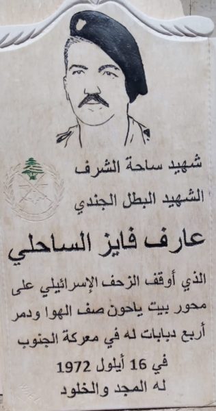 عارف فايز الساحلي الجندي اللبناني ابن عين عطا من عشيرة بني معروف، من أشاوس وادي التيم المتيم بالشمم وعاليات الهمم مشى على النار بحبور يرفل بالعز،امتشق دمه ذات عدوان صهيوني على لبنان في 16 ايلول عام 1972 ورمى بطلقة برق وهبوب ومض رأس حربة الرتل الآلي اليهوهي (ابناء يهوه اليهود) الزاحف نحو محور بيت ياحون/ صف الهوا.. وبعد استشهاد رفاقه ..تسمَّر كالصخرة الصلدة فوق مدفع ال106 المباشر المكفَّن بمعزوفة الموت وغدا الملقِّم والمسدَّد والرامي في آن فأعطب الدبابة الاولى والثانية تفحَّمت والثالثة تكوَّرت والرابعة تجمَّرت وأعيا جند الصهاينة الذين استماتوا لازاحته واستشاطوا حقدا فعاجلوه بغارة جوية ليتشظى جسده كصهيل الاسطورة خلف الجراح….