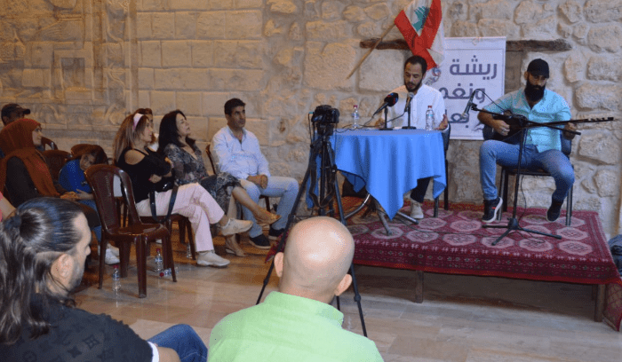 وألقت رئيسة جمعية “ريشة ونغم”، نبيلة وهبي قصيدة باللغة العامية، مطلعها: “مين وشوش  الصفصاف بالأسرار ت وراقو تنحني”.