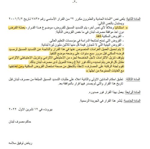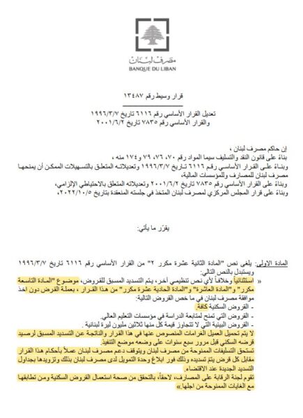 تعميمٌ من “المركزي” يتعلّق بـ”القروض والتسليفات”