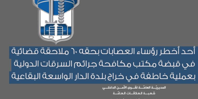 في إطار ملاحقة العصابات الخطرة وتفكيكها وتوقيف الرؤوس المدبّرة فيها، ونتيجةً لعمليّات رّصدٍ وتعقّب استمرّت لعدّة أشهر، تمكّن عناصر مكتب مكافحة جرائم السرقات الدولية في وحدة الشّرطة القضائية من تحديد مكان وجود أحد أخطر رؤساء العصابات والمطلوبين للقضاء، وهو حذر جدًا في تنقلاته، ويتّخذ من الجرود مقراً له.