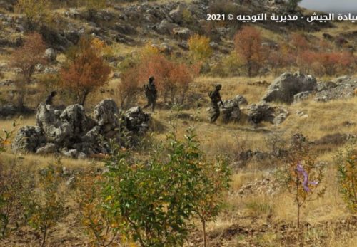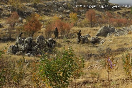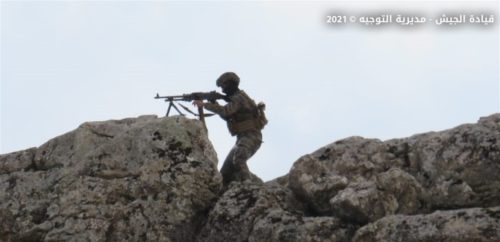 نفّذت وحدة من فوج الحدود البرية الثالث بالاشتراك مع وحدة من فوج المغاوير، تمارين تدريبية تحاكي مهاجمة مجموعة إرهابية حاولت الاعتداء على أحد المراكز العسكرية، تخللتها مطاردة عناصر من المجموعة والقضاء عليها.