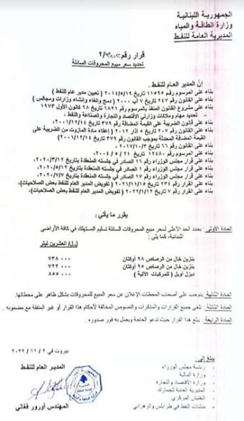 صدر عن وزارة الطاقة والمياه صباح اليوم الأربعاء, جدولٌ جديد للمحروقات، وجاءت الأسعار على الشّكل الآتي: