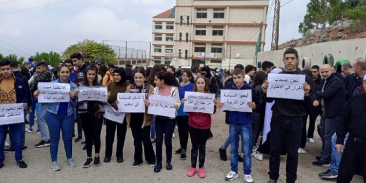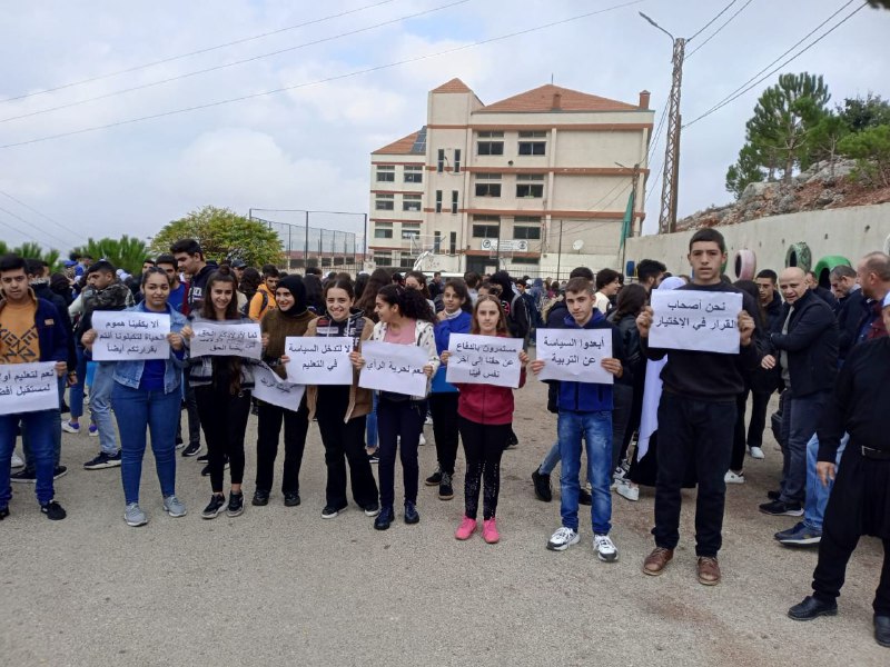 فقد اعتصم الطلاب رافعين لافتات وشعارات رفضا لقرار وزير التربية، مطالبين الوزير ومديرية التعليم الثانوي “العودة عن قرارهم”، كما رفضوا التدخلات السياسية في هذا الموضوع، مصرين على عدم تدخل السياسة بالشأن التربوي.
