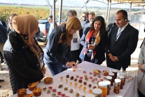 وفي نهاية الجولة تذوّق الحضور منتوجات المونة من صنع سيّدات الجمعية التعاونية في مجدل عنجر – مبادرات التي تم تجيزهابالمعدّآت الحديثة من قبل USAID ، ثم قدّم ياسين درع تقدير وشكر بإسم أهالي مجدل عنجر للسيّدة باور، وقدّمت لها ريّا حمزة سلة من المونة البيتية من صنع السيدات في التعاونية.
