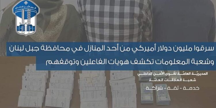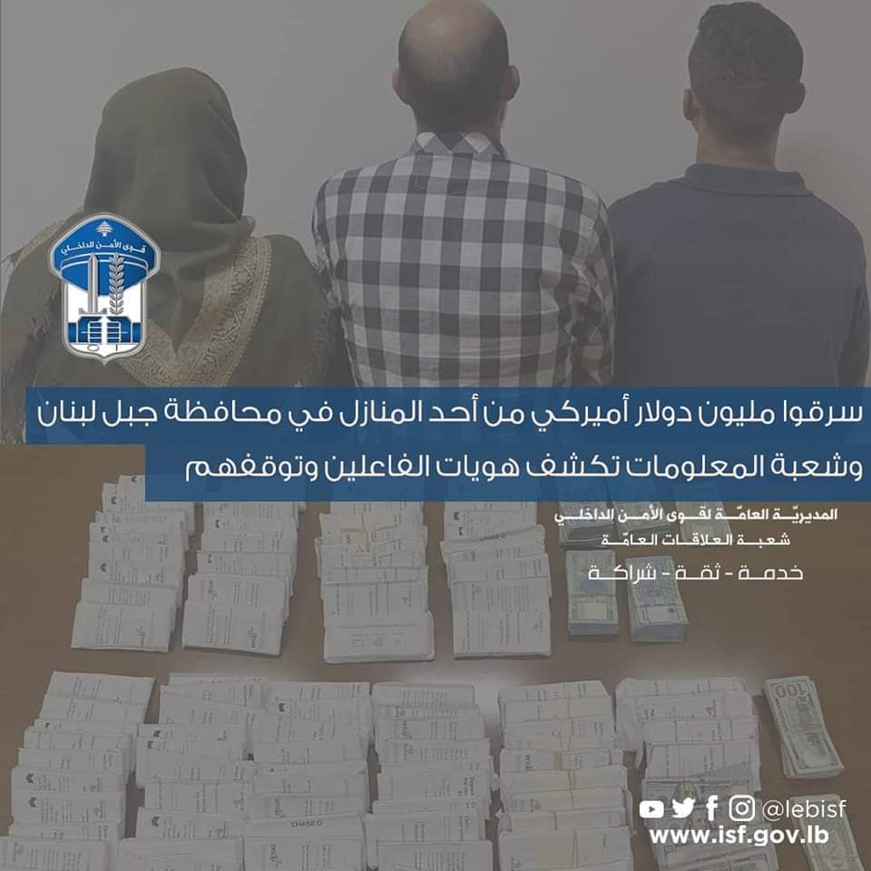 سرقوا مليون دولار أميركي من أحد المنازل في محافظة جبل لبنان وشعبة المعلومات تكشف هويات الفاعلين وتوقفهم