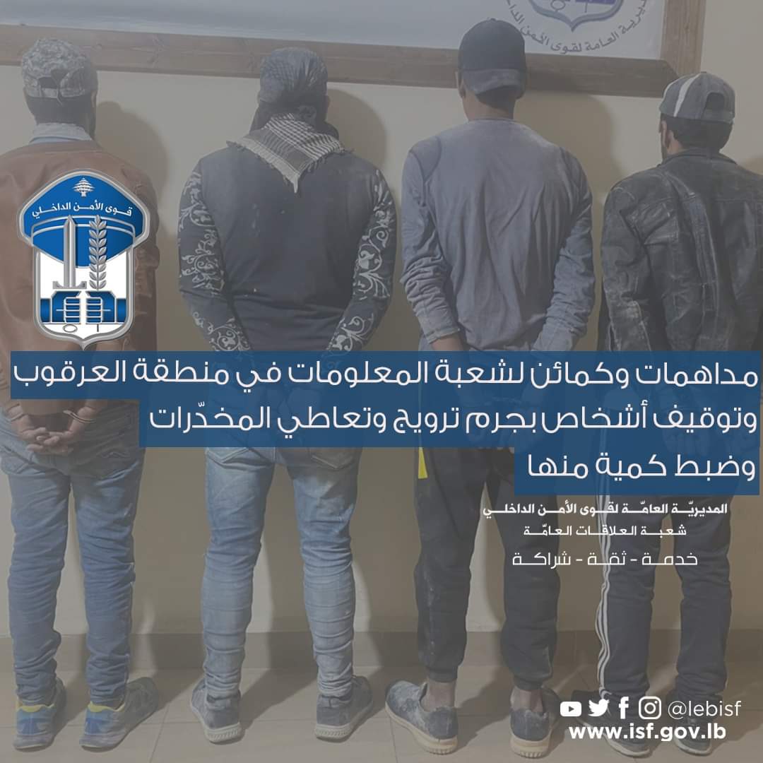 في إطار المتابعة المستمرة التي تقوم بها شعبة المعلومات لمكافحة عمليات تجارة وترويج المخدّرات في المناطق اللبنانية كافة، والتي أدّت الى توقيف عددٍ كبير من المتورطين، وبنتيجة الجهود الميدانية والاستعلامية، تمكّنت من تحديد هويّة مروّج مخدّرات ينشط في منطقة العرقوب / قضاء حاصبيا، ويدعى: