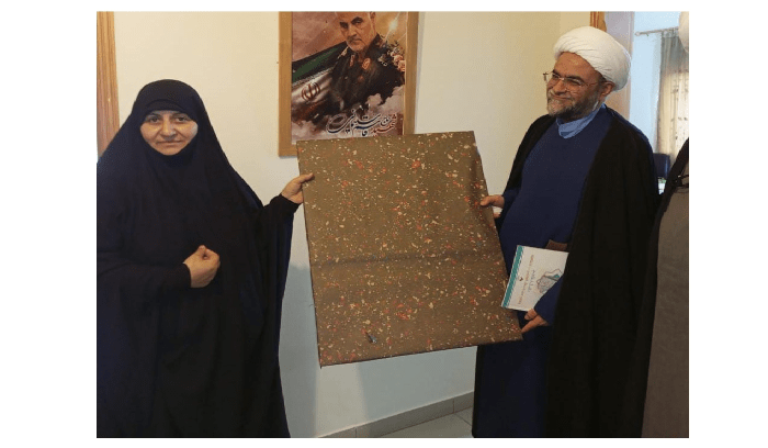 وقدمت الموسوي لوحة تذكارية باسم المعاهد لكل من الشيخ بهجت بور والشيخ سبحاني .