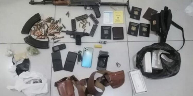 دهمت دورية من مديرية المخابرات منزلاً في بلدة شتورة وأوقفت المواطن (ف.ح.) والسوري (ج.ع.)، وهما مطلوبان بموجب عدة مذكرات توقيف لإقدامهما على الإتجار بالأسلحة والمخدرات وترويجها، وضبطت داخل المنزل أسلحة حربية وعتاداً عسكرياً وذخائر وكمية من المخدرات.