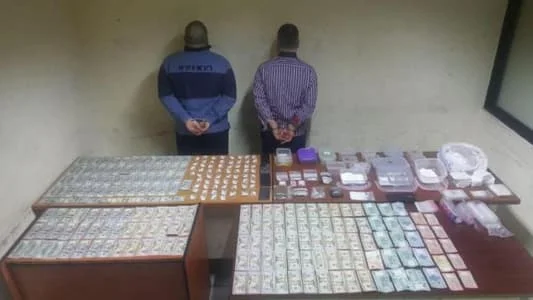 وبتفتيشهما والسيارة ضبط بحوزة الاول: /62/ غ من مادة الكوكايين مقسمة ومعدة للترويج داخل مظاريف، مبلغ مالي عبارة عن /10,670/$، /50/ يورو و/1,500,000/ ل.ل.، /4/ هواتف خلوية، بطاقة هوية ورخصة سوق مزورتَين.