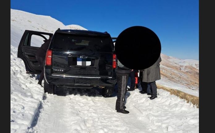 عمل عناصر من الدفاع المدني بعد ظهر اليوم على إنقاذ عائلة مؤلفة من خمس أشخاص علقت سيارتهم بالثلوج في عيناتا.