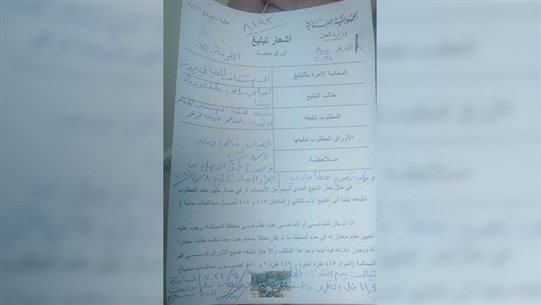 وتشاهدون صورة عن إشعار التبليغ مرفقة.