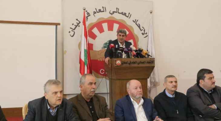 رئيس الإتحاد العمالي العام: سندعو الى إضراب في 8 شباط على الاراضي اللبنانية كافة
