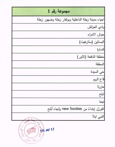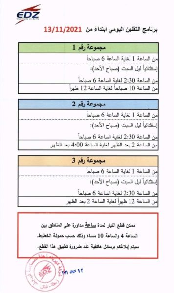 شركة كهرباء زحلة تصدر برنامج تقنين جديد إبتداءً من يوم غد ٢٠٢١ / ١١ / ١٣ .