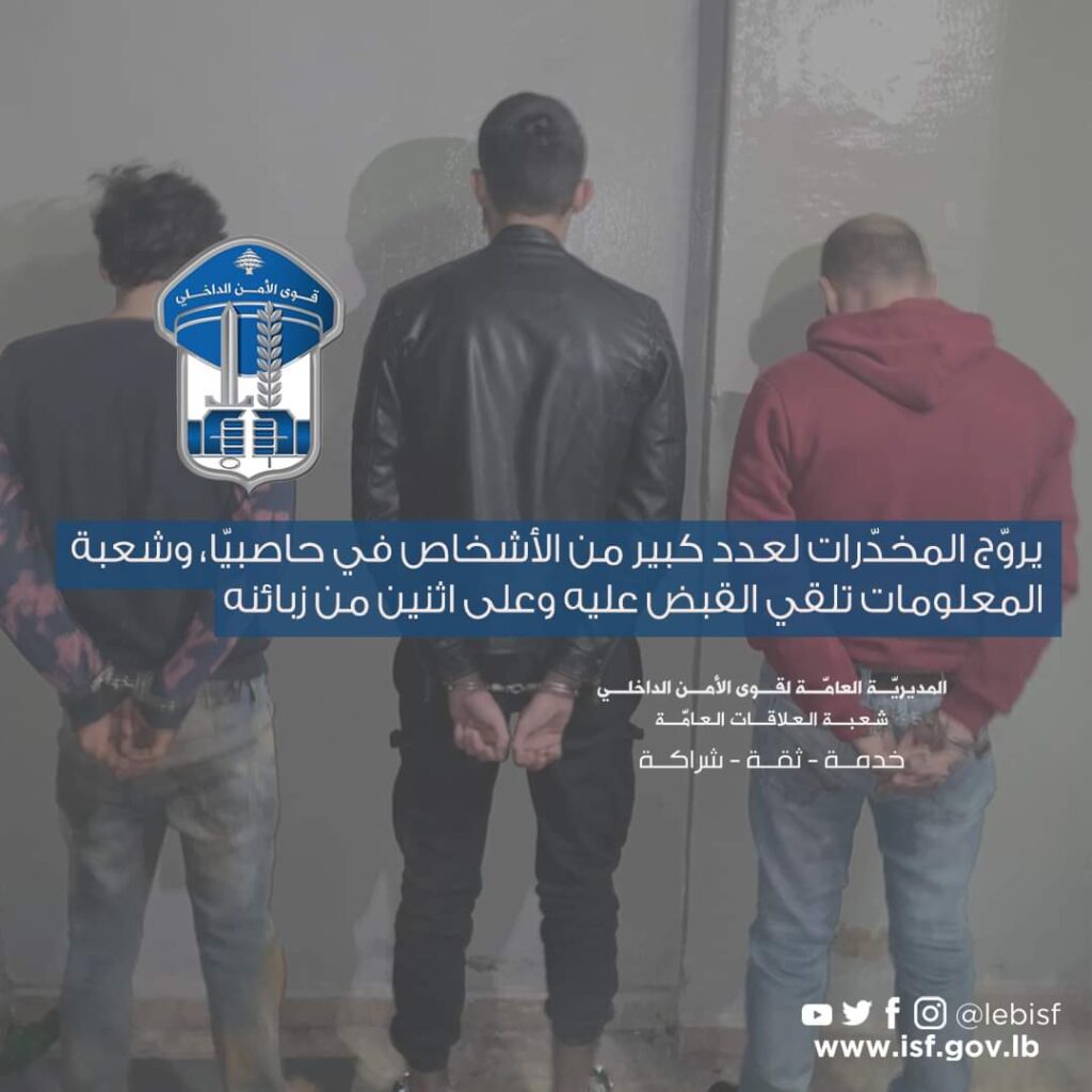 في إطار المتابعة المسّتمرة التي تقوم بها شعبة المعلومات في قوى الأمن الداخلي في مجال مكافحة عمليات تجارة وترويج المخدرات في مختلف المناطق اللبنانية، توافرت معلومات للشعبة حول قيام مجهول بترويج المخدّرات في محلة حاصبيا.