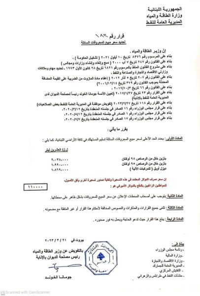 صدر عن وزارة الطاقة والمياه عصر اليوم الثلاثاء، جدول ثالث لأسعار المحروقات.