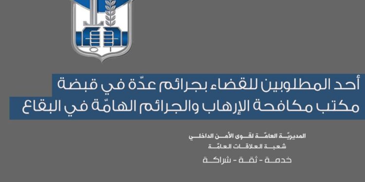في إطار العمل الذّي يقوم به مكتب مكافحة الإرهاب والجرائم الهامّة – البقاع في وحدة الشرطة القضائيّة للحدّ من انتشار الجرائم وملاحقة المطلوبين وتوقيفهم.