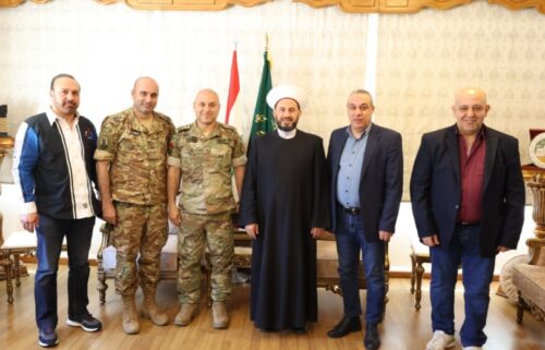 قدم قائد فوج التدخل السادس في الجيش اللبناني العقيد ديفيد بشعلاني التهاني بعيد الفطر السعيد الى مفتي زحلة والبقاع الشيخ الدكتور علي الغزاوي يرافقه رجلا الاعمال غابي فرج وايلي الزمار وصاحب موقع الرأي الالكتروني الإعلامي سامر الحسيني.
