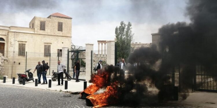 عمد العديد من الأشخاص، بتحريض من التجار في مدينة بعلبك إلى إحراق الإطارات في ساحة البلدة وعلى مدخل القلعة، اعتراضاً على افتتاح المدخل الجديد للقلعة.