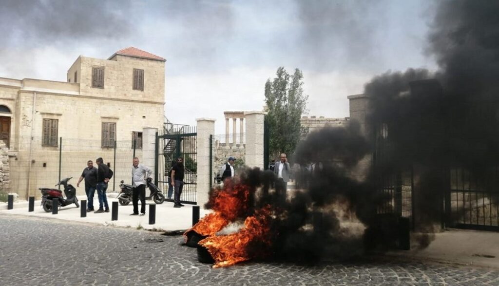 عمد العديد من الأشخاص، بتحريض من التجار في مدينة بعلبك إلى إحراق الإطارات في ساحة البلدة وعلى مدخل القلعة، اعتراضاً على افتتاح المدخل الجديد للقلعة.