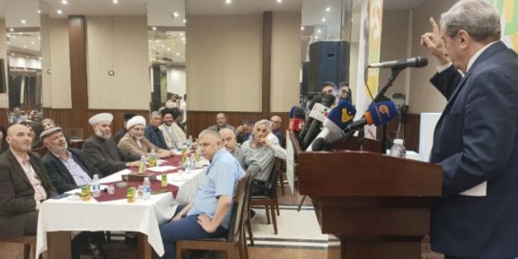 نظّم “اللقاء الوطني للعاملين في القطاع العام” لقاء لمناسبة “عيد المقاومة والتحرير”، تحت عنوان “دور العمل النقابي في تعزيز ثقافة المقاومة”، بحضور رئيس مجلس النواب السابق إيلي الفرزلي، مسؤول وحدة النقابات والعمال المركزية في “حزب الله” هاشم سلهب، ممثل المجلس الاسلامي الشيعي الأعلى القاضي الشيخ محمد مهدي اليحفوفي، عضو هيئة الرئاسة في حركة “أمل” العميد المتقاعد عباس نصرالله، رئيس بلدية بعلبك بالإنابة مصطفى الشل، ممثل دار إفتاء محافظة بعلبك الهرمل بالشيخ رياض صالح، كاهن رعية جديدة الفاكهة الأب برنار بشّور، منسق تيار المردة في البقاع غابي لبس على رأس وفد، رئيس اتحاد نقابات عمال فلسطين غسان البقاعي، رئيس رابطة التعليم الثانوي الرسمي في لبنان نزيه الجباوي، مدير مديرية البقاع في “مؤسسة جهاد البناء الإنمائية” خالد ياغي، وفاعليات نقابية واجتماعية.