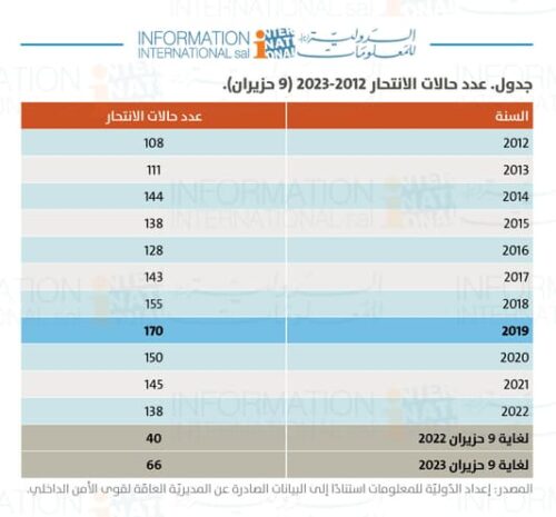 هذه الجرائم وغيرها رفعت حالات الانتحار خلال الأشهر والأيام المنصرمة من العام الحالي إلى 66 ضحية، مقارنة بـ 40 حالة في الفترة نفسها من العام الماضي، مسجّلة ارتفاعًا بنسبة 65 في المئة.