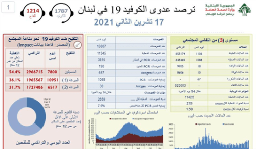 أعلنت وزارة الصحة العامة في تقريرها اليومي تسجيل “1106 إصابات جديدة بفيروس كورونا رفعت العدد التراكمي للحالات المثبتة الى 655174، كما تم تسجيل 10 حالات وفاة”.