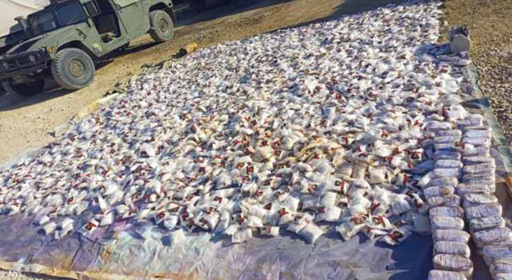 اعلنت قيادة الجيش – مديرية التوجيه في بيان، بانه “بتاريخ 5/7/2023، ضبطت وحدة من الجيش تؤازرها دورية من مديرية المخابرات في سهل طليا ــ البقاع شاحنة محملة بنحو3.5 مليون حبة كبتاغون وكمية من حشيشة الكيف تم إخفاؤها داخل أنابيب حديدية. كما دهمت قوة من الجيش في بلدة مقنة – البقاع منزل المواطن (ع.م.) المطلوب لارتكابه جريمة السلب بقوة السلاح وأوقفته، وضبطت سيارة رباعية الدفع وأسلحة حربية وكمية من الذخائر. كذلك، أوقفت المواطن (ح.م.) لاعتراضه عمل العناصر. وسلمت المضبوطات وبوشر التحقيق مع الموقوفَين بإشراف القضاء المختص”.