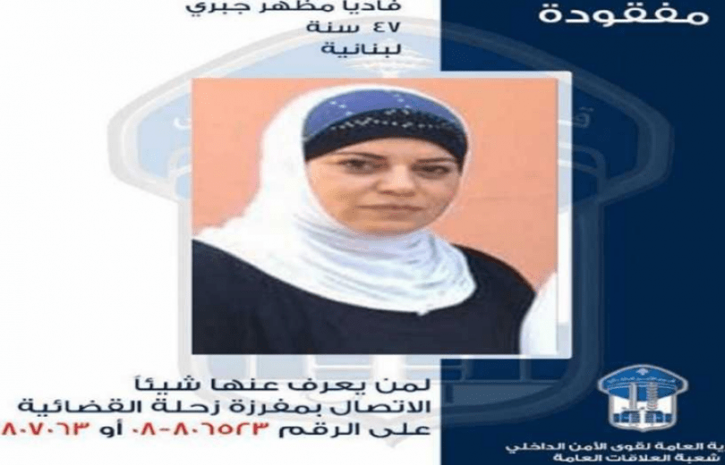 يرجى من الذين شاهدوها أو لديهم أي معلومات عنها أو عن مكانها، الاتصال بمفرزة زحلة القضائية في وحدة الشرطة القضائية على الرقم: 806523-08 أو 807063-08، للإدلاء بما لديهم من معلومات”.