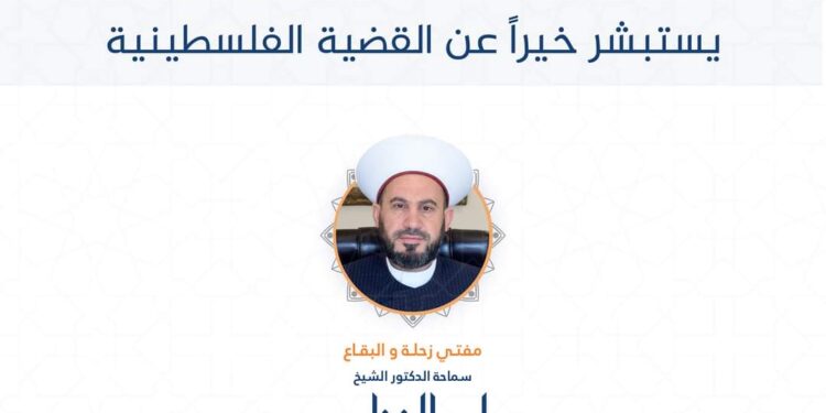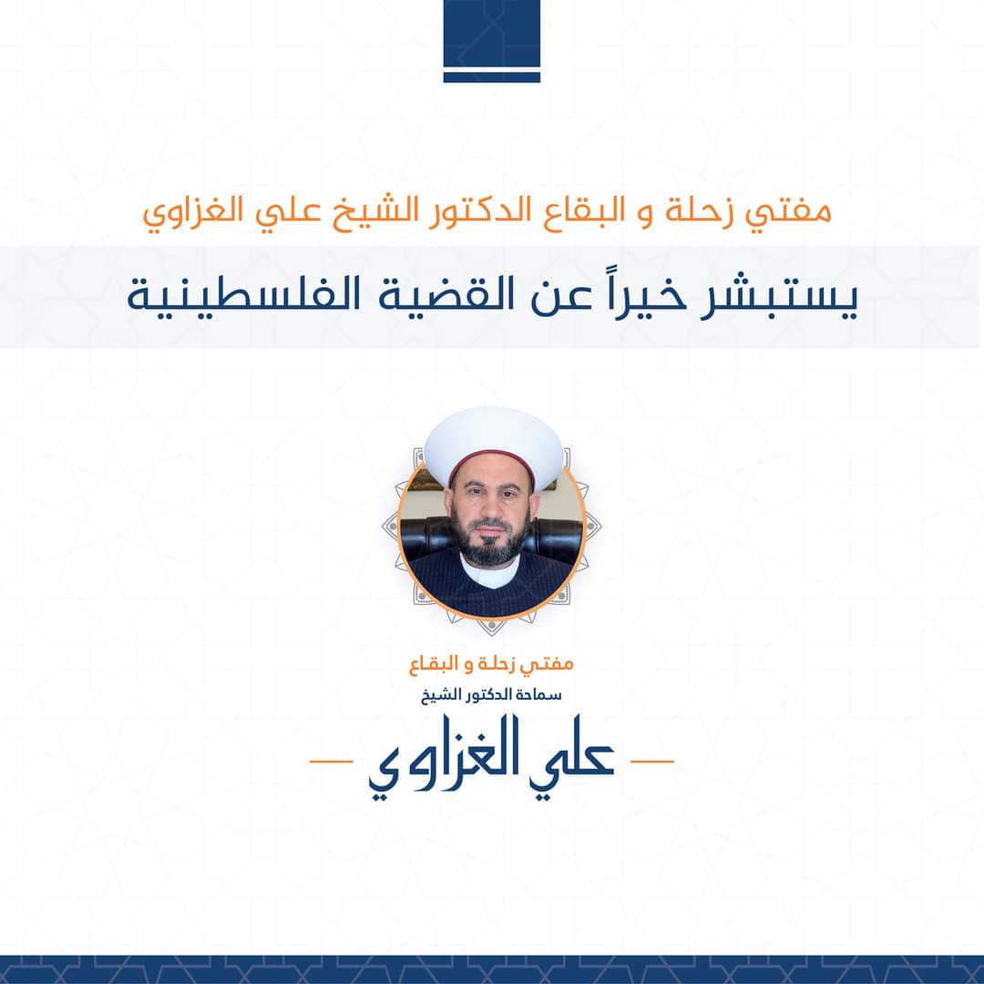مفتي زحلة و البقاع الدكتور الشيخ علي الغزاوي يستبشر خيراً عن القضية الفلسطينية