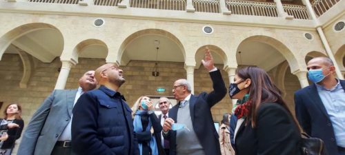 بعد زيارة ميدانية للإطلاع على كيفية عمل المحطة، إنتقل الحاضرون الى “القصر البلدي” في زحلة وعقدوا لقاء في قاعة إجتماعات المجلس البلدي. وقد عبر الحاضرون عن إعجابهم بالخطوات المتقدمة التي تحققها بلدية زحلة سواء من خلال تدبير إدارة نفاياتها الصلبة، وسعيها لإستدامة العمل بمرافقها، الى إنجاز القصر البلدي. وعبر وزير الطاقة عن سعادته لرؤية بلدية ناجحة في إدارة شؤونها المحلية وبالمعايير التي رفعتها البلدية في عملها. ودعا وزير البيئة الى أخذ زحلة كنموذج يمكن ان يحتذى به في الشأن البيئي مشددا على أهمية دور البلديات في الإدارة المحلية لنفاياتها، وأبدى إستعدادا لدراسة ما إقترحه رئيس البلدية حول ضرورة فرض رسم لمعالجة النفايات يساعد البلديات على التخفيف من اعبائها في هذا المجال.  وشكرت السفيرة الإيطالية رئيس البلدية لدعوته التي عرفتها الى مقر المجلس البلدي، وشكرت المجلس على ما يبديه من إلتزام وقيادية في إدارة شؤون المدينة. مشددة على الأولوية التي توليها السفارة الإيطالية لمحطة التكرير التي تعتبر أيضا نموذجا يمكن أن يحتذى به لبناء إستراتيجية تسمح برفع التلوث. وأكدت ممثلة البنك الدولي السعي للاستجابة مع الحاجات الملحة. وشددت على الاولوية التي يعطيها البنك الدولي لمعالجة مشكلة النفايات الصلبة التي تتسبب بتلوث في الليطاني والقرعون. الى سد الثغرات في محطة تكرير مياه الصرف الصحي في زحلة.