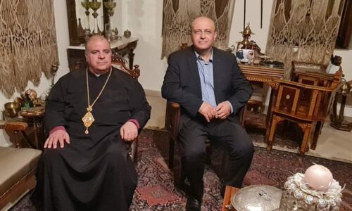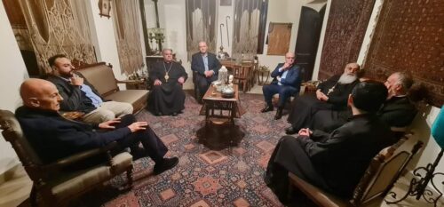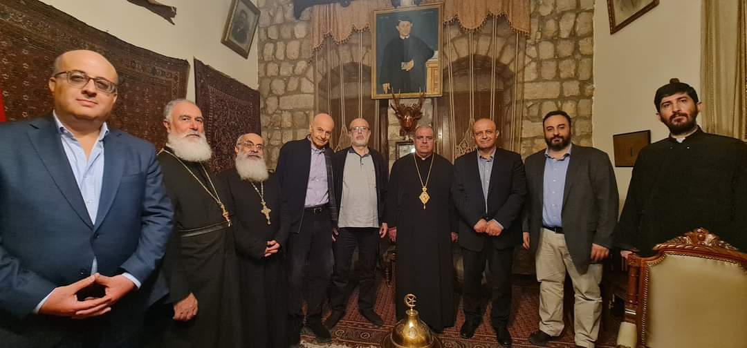 رافق المطران ابراهيم في الزيارة النائب ألأسقفي العام الأرشمندريت نقولا حكيم، الأرشمندريت مطانيوس نصرالله، الأب شربل راشد والمسؤول الإعلامي في الأبرشية خليل عاصي.