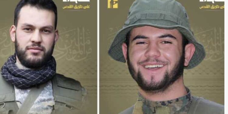 أعلن الإعلام الحربي في “حزب الله”، في بيان، أنّ “بمزيد من الفخر والاعتزاز، تزفّ المقاومة الإسلاميّة الشّهيد المجاهد مهدي علي ناصر الدين “عباس” من مدينة الهرمل في البقاع، والشّهيد المجاهد حيدر علي نون “أبو تراب” من بلدة رام وسكان مدينة بعلبك في البقاع، اللذين ارتقيا شهيدَين على طريق القدس”.