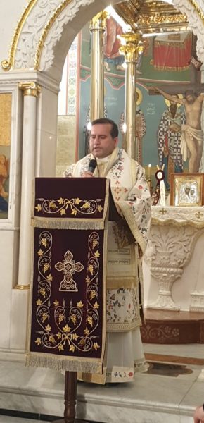 كما أرحّبُ باسم إخوتي الكهنة ورهبانِ الأبرشية وراهباتها ومؤمنيها ومؤمناتِها، بغبطة البطريرك يوسف العبسي وأشكره على ترؤسِه هذا القداسِ الإلهي، فحضورُه معنا يُضفي على الاحتفال بهجةً ورونقًا بهياً.