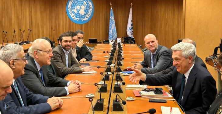 أعلن رئيس حكومة تصريف الأعمال نجيب ميقاتي، عقب لقائه مفوض الأمم المتحدة لشؤون اللاجئين فيليبو غراندي في مقرّ الأمم المتّحدة في جنيف، أنّ “اجتماعنا كان مثمرًا وأهم ما فيه أن مفوضية اللاجئين سلمت الامن العام اللبناني كامل الداتا المتعلقة بالنازحين، ويجري حاليًا فرز الجداول، وتبيان وضع كل حالة بمفردها، ومن بينهم غير المسجلين لدى المفوضية، واستطيع القول إن الافكار كانت متقاربة”.