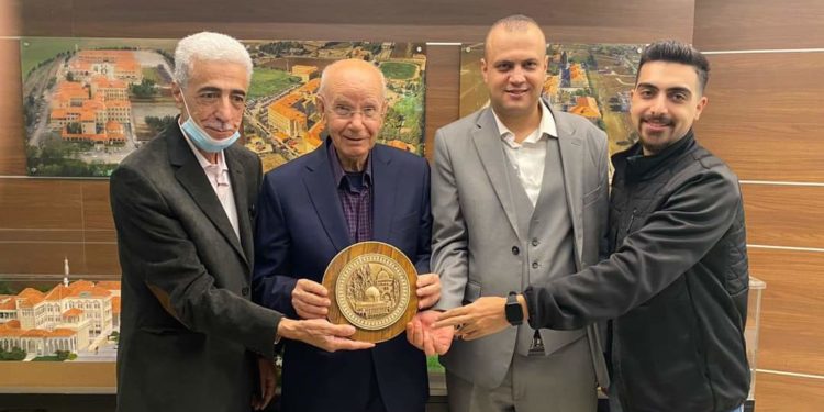 وفي ختام اللقاء قدّم الوفد درع القدس لسعادته تكريما له وتقديرا لمواقفه الوطنية والعروبية.