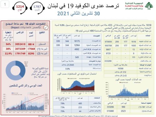 كورونا لبنان: 1618 اصابة جديدة و9 حالات وفاة