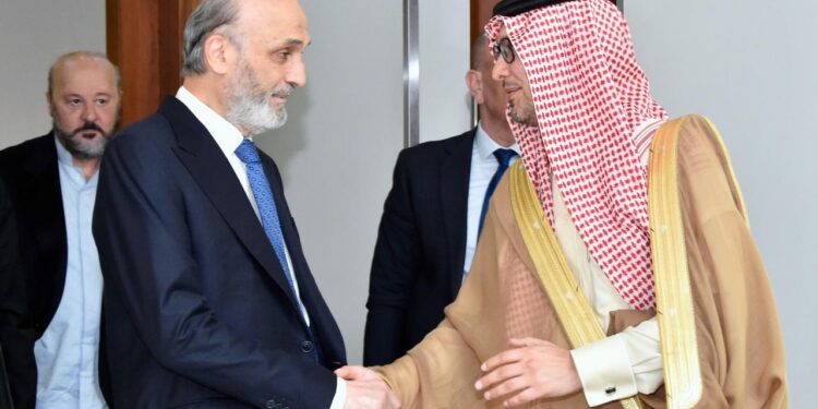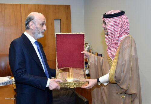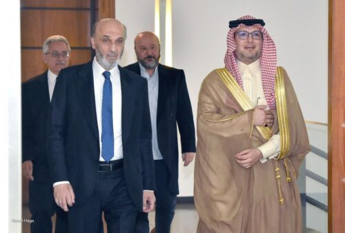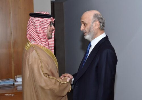 التقى رئيس حزب “القوات اللبنانية” سمير جعجع، في معراب، سفير المملكة العربية السعودية في لبنان وليد البخاري، في حضور عضو تكتل “الجمهورية القوية” النائب ملحم الرياشي وعضو الهيئة التنفيذية في الحزب جوزيف جبيلي.