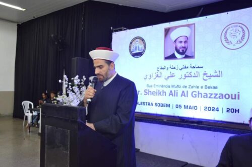 وذلك بحضور ممثل دار الفتوى في البرازيل وأمريكا اللاتينية المعتمد الديني الشيخ علي الخطيب ورئيس الجمعية الخيرية الإسلامية في سانتو أمارو مصعب العرة ومشاركة عدد كبير من علماء البرازيل ورؤساء الجمعيات وأعيان الجالية العربية والإسلامية وكبارها، من أبناء منطقة البقاع وغيرها.