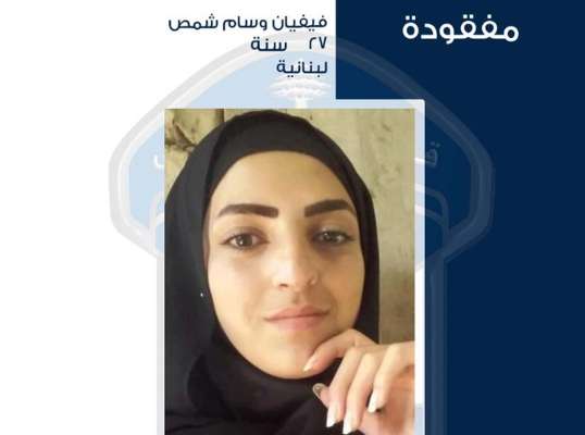 عممت المديريّة العامّة لقوى الأمن الدّاخلي ـ شعبة العلاقـات العامّة، بناءً على إشارة القضاء المختص، صورة المفقودة: فيفيان وسام شمص (من مواليد عام 1997، لبنانيّة)، التي غادرت منذ حوالى الـ6 أيام منزلها الكائن في بلدة الكنَيسة، ولم تَعُد لغاية تاريخه”.