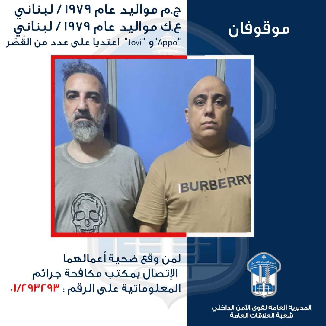 تُعمّم المديرية العامة لقوى الأمن الداخلي بناءً على إشارة القضاء المختص، صورة الموقوفين: