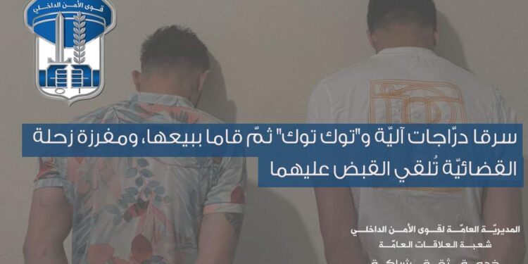 سرقا درّاجات آليّة و”توك توك” ثمّ قاما ببيعها، ومفرزة زحلة القضائيّة تُلقي القبض عليهما.