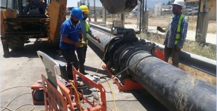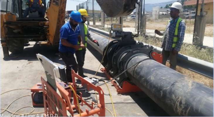 وأضاف وزير البيئة في بيان “يتم حالياً استعمال تقنية حفر الأنفاق، حيث يتم حفر النفق باستعمال آلة حفر خاصة تحت الاوتستراد العربي، ويتم دفع المواسير المخصصة لهذا الخط حيث يبلغ طول الخط الناقل ما يقارب 70 متراً، وقطر كل من القسطلَين المصنّعَين من البلاستيك المقوى بالألياف 500 ملم”.