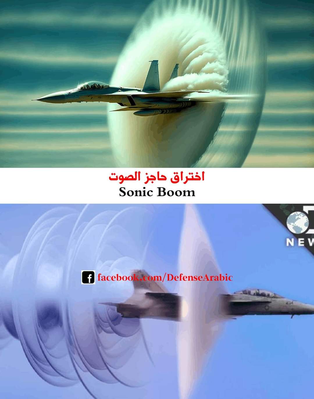 الطائرات الحربية والمقاتلات قادرة على اختراق حاجز الصوت، وعندما يحدث ذلك، يمكن سماع صوت عالٍ يُعرف بـ “الانفجار الصوتي” أو “Sonic Boom” في اللغة الإنجليزية. هذا الصوت هو نتيجة تجمع الأمواج الصوتية التي تلحق بالطائرة حيث تتحد كل الموجات الصوتية التي كانت تنطلق أمام الطائرة لتتجمع كلها مع بعضها البعض وتلحق بالطائرة.