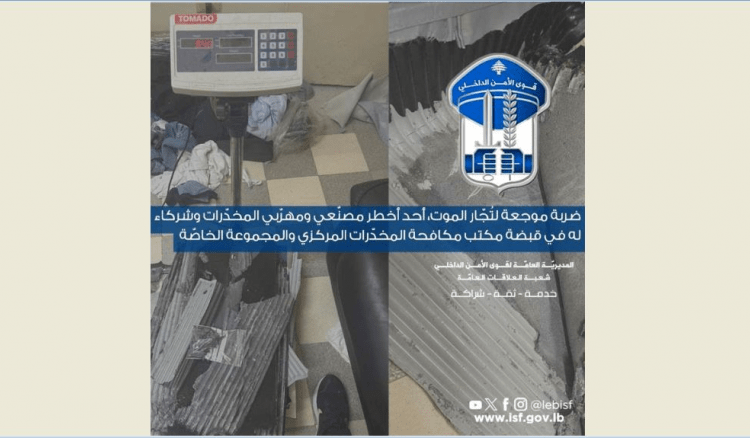 “في إطار المتابعة المستمرة التي تقوم بها قوى الأمن الداخلي لملاحقة المتورّطين بعمليات تجارة وترويج المخدّرات في مختلف المناطق اللبنانية وتوقيفهم، توافرت معلومات لدى مكتب مكافحة المخدّرات المركزي في وحدة الشّرطة القضائيّة عن أحد أخطر المطلوبين للقضاء بجرائم تصنيع وتهريب حبوب الكبتاغون، وتوصّلت عناصر المكتب إلى تحديد هويّته، وتبيّن أنه يُدعى: م. ج. (من مواليد عام 1984، لبناني) وهو أحد أكبر مهربي المخدّرات إلى: الكويت، مصر، المملكة العربيّة السعوديّة، العراق، ليبيا وتركيا، ومطلوب للقضاء بموجب أكثر من عشرين ملاحقة قضائيّة بجرائم تهريب، وتصنيع، وتجارة، وترويج المخدّرات.