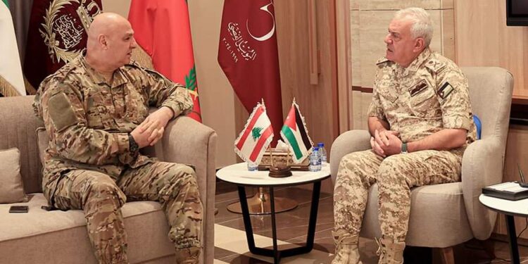 استقبل جلالة الملك عبد الله الثاني بن الحسين ملك المملكة الأردنية الهاشمية قائد الجيش العماد جوزاف عون، وبحث معه الأوضاع في المنطقة في ظل العدوان الإسرائيلي المستمر على لبنان، وتم التداول في وضع المؤسسة العسكرية والتحديات التي تواجهها. وأكد جلالة الملك عبد الله الثاني أهمية دور الجيش بوصفه ضمانة الأمن والاستقرار في لبنان، ووقوف المملكة الدائم إلى جانبه. وأعرب العماد عون عن شكره العميق للمملكة على دعمها المتواصل للمؤسسة العسكرية والوطن، لا سيما المساعدات الإنسانية التي قدمتْها خلال المرحلة الحالية.