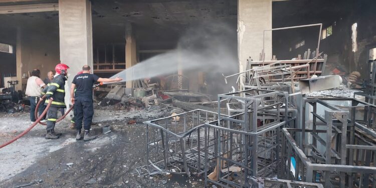 اخمد عناصر الدفاع المدني الحريق الذي شب جراء استهداف العدو الاسرائيلي من مسيرة لكاراج داخل احد المباني في بلدة تعلبايا بثلاث غارات منذ بعض الوقت، حيث اقتصرت الاضرار على الماديات ولا يوجد اي اصابات.
