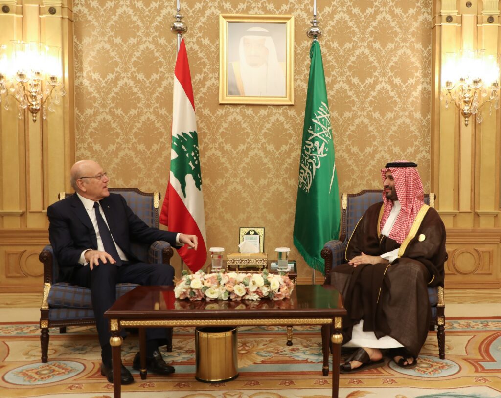 إستقبل ولي عهد المملكة العربية السعودية الامير محمد بن سلمان بن عبد العزيز آل سعود رئيس الحكومة نجيب ميقاتي مساء اليوم في مقر انعقاد القمة العربية والاسلامية غير العادية في الرياض.